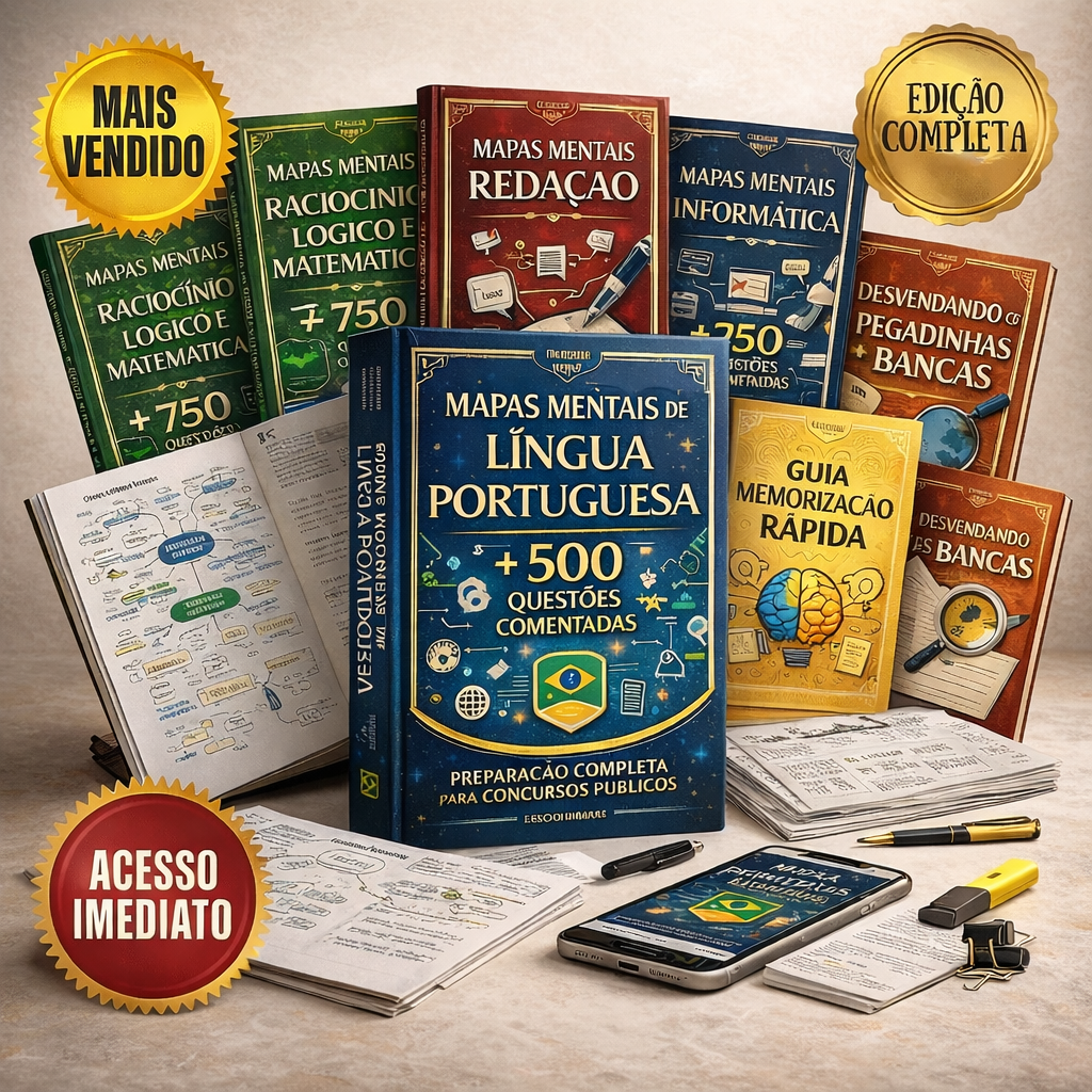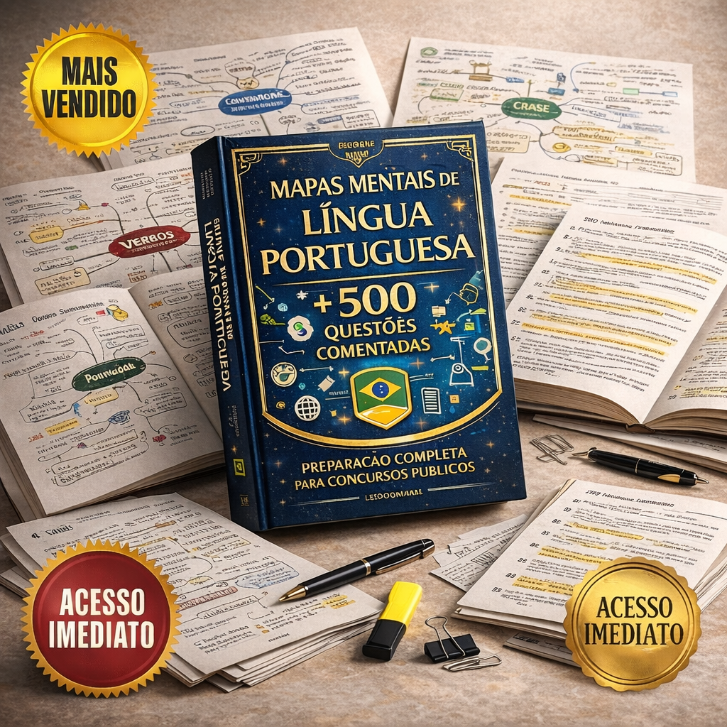 Você terá acesso a 84 Mapas Mentais Visuais e 500 Questões Comentadas, criados para te ajudar a dominar todo o conteúdo e acertar mais questões, mesmo com pouco tempo para estudar.